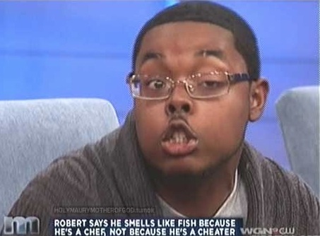 Robert says he smells like fish because he's a chef not because he's a cheater. Well I'm glad he cleared that up.