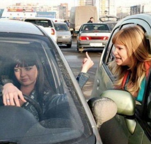 This girl shows you how to use hand signals when you are driving. All you really need is one middle finger and that's a universal signal