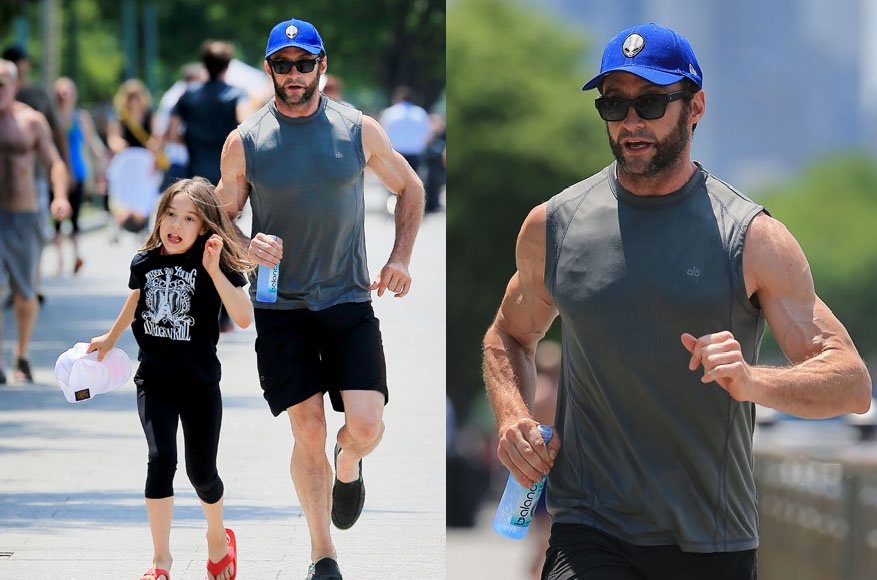Bringing out the kid inside, Hugh Jackman chased his daughter around a park in New York City on Sunday.