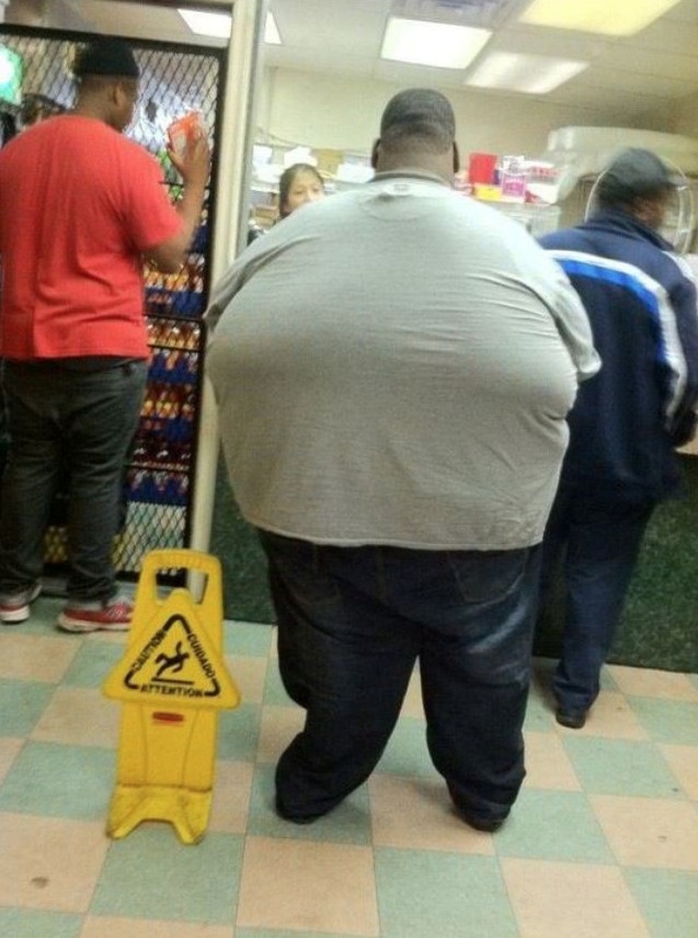 Humongous Man. Huge Back Boobs. Wet Floor. Imminent Disaster.