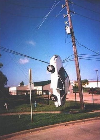 how did this happen and how fast was she driving to get stuck on top of the electric lines
