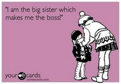 "I am the big sister which makes me the boss!" Thats the same thing that my older sister keeps saying when I was young.