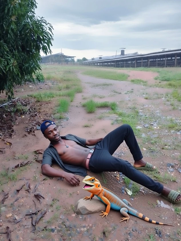 I felt down while pursuing agama lizard, and the lizard 🦎 started laughing at me.