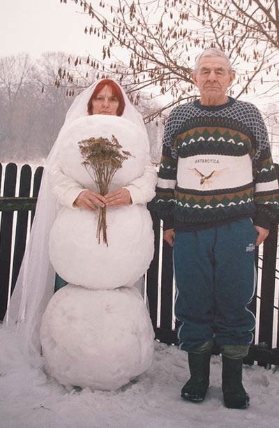 I Love My Wife But She is Very Cold - Guy Marries a Snowman Bride Wedding Photo