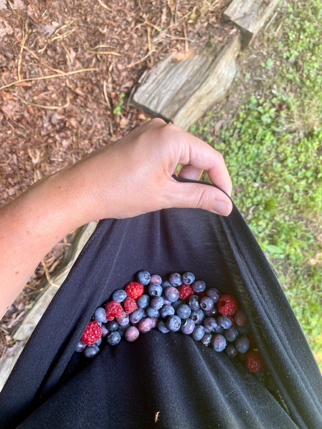 I may not be yacht rich, but I am shirt-full of garden berries rich.