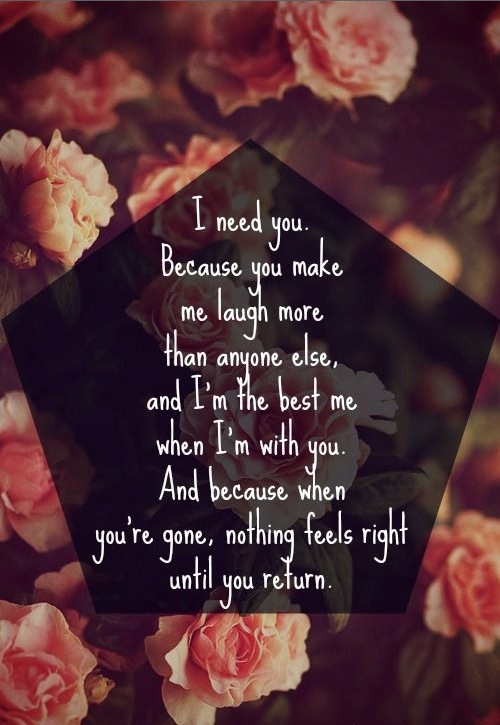 I Need You. When You're Gone, Nothing Feels Right Until You Return. - Love Quotes