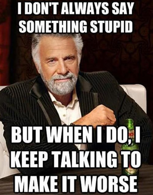 I don't always say something stupid but when I do, I keep talking to make it worse