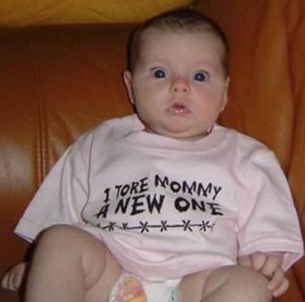 This baby tore mommy a new one. Now she has two so it should be easier the next time! Oh well, at least the baby has a good sense of humor