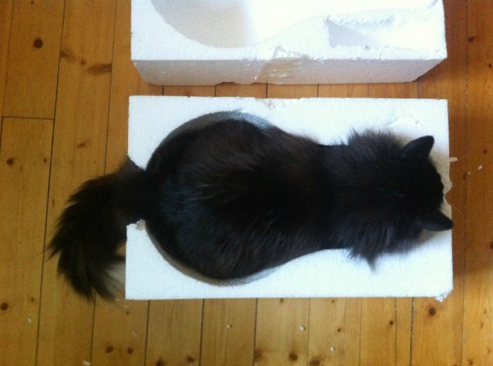 My kitty cat will sit in any space she can fit including a packing box for a lamp!