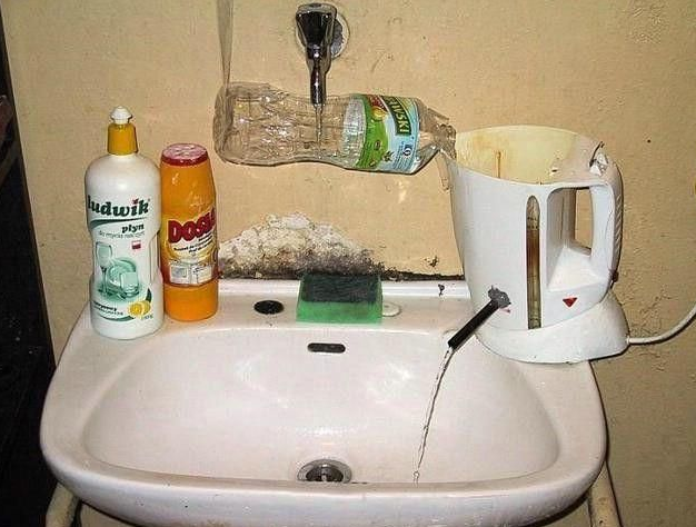 In my old apartment the water heater brokered and I had no running hot water, so my room made came out with a great idea to heat up the water.