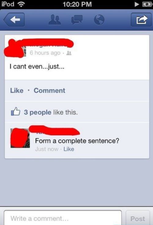 Why is it such a struggle for people to string together tangible ideas and come up with a coherent sentence? I fear for the future of this generation.