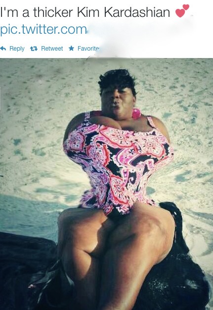 I don't think Kim Kardashian would approve of this tweet. Not only does she not look like Kim Kardashian but Kim's butt is bigger too.