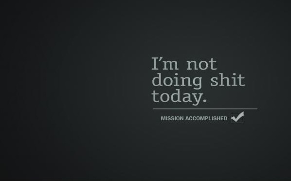 I'm not doing s**t today. Mission Accomplished! My task list for today is complete. Now I can spend the rest of the day relaxing.
