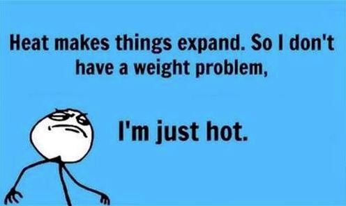 SO heat makes things expand, so i don't have a weight problem, I'm just full of hot.