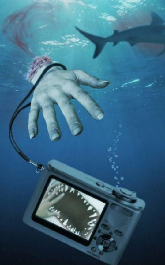 Look guys i'm swimming with the sharks and I have a pic to prove it oh no theres goes my hand