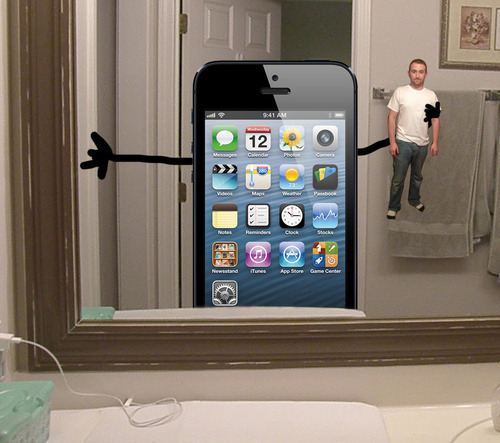 In a parallel universe, the smartphones use humans to take mirror selfies. It's the other way around.