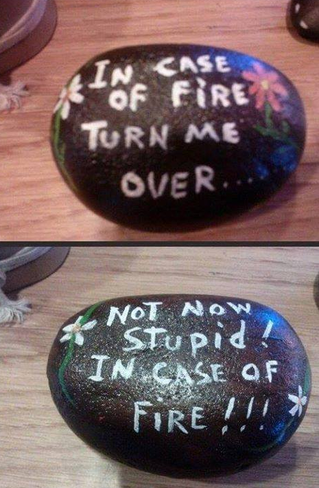 In case of fire turn me over....
