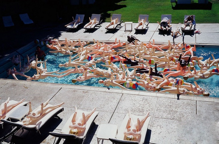 It's an inflatable doll convention at this pool. These dolls must be having the time of their life because they all float. No possibility of drowning unless somebody lets the air out.