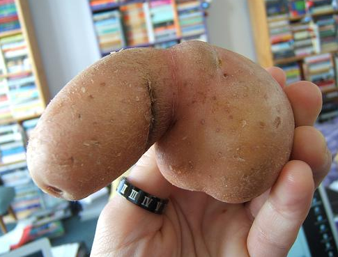 This potato must be really old, Look at the way it shaped it looks like a mens jingle bells. You are probably wondering why jingle bells well because its the sound it creates that satisfies a men.