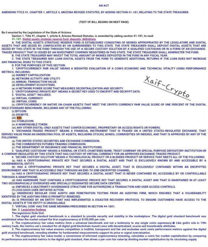 🚨 It's literally in the bill. Arizona's SB1649 explicitly names $XRP as an eligible digital asset for the state's Strategic Reserve Fund right alongside Bitcoin. This isn't speculation. This is LAW in progress. 📜