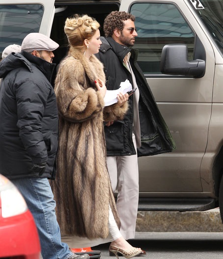 Jennifer Lawrence covered up in a floor-length fur coat and glamorous updo to join costar Bradley Cooper on the Boston set of their untitled David O. Russell project today. Bradley was sporting tightly curled locks for the day of filming. Today marks the first time we've seen Jennifer and Bradley, who starred together in Silver Linings Playbook last year, hit the New England set together; however, both have popped up for work on the film separately. Jennifer wore the same updo for the cameras last week, while Bradley also appeared with pink curlers in his hair last month.