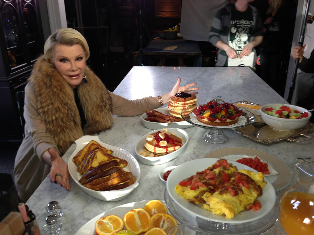 Joan Rivers looks great at 79 years old. Look at her hair and her outfit ...gorgeous ! The food doesn't look too bad either.