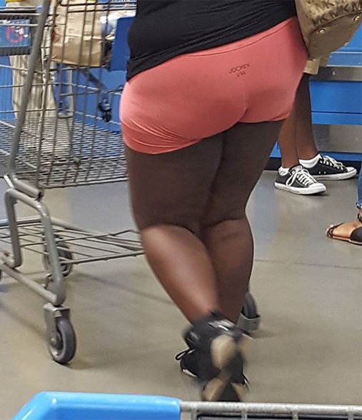 What a great new fashion trend! Now you no longer have to wear any pants around the store. Now it's more important than ever to make sure you don't have any skid marks.