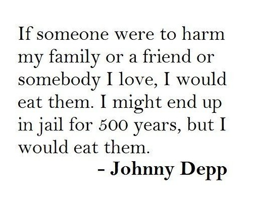 If someone were to harm my family or a friend or somebody I love, I would eat them. I might end up in jail for 500 years, but I would eat them. I'm definitely NOT going to mess with Johnny Depp's family!!!