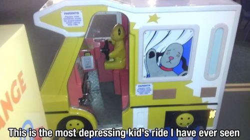 This isn't really a ride that's designed to make kids happy, I'm guessing. That expression on the dog's face isn't exactly a show of joy.