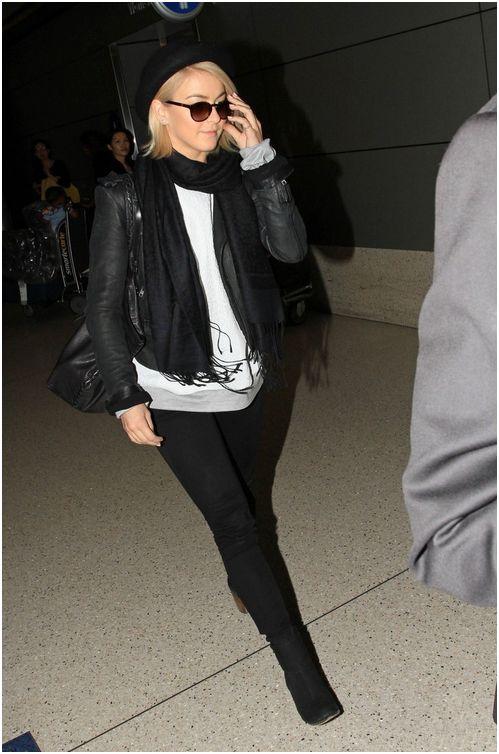 Julianne Hough laughs with paparazzi as she arrives at LAX airport in Los Angeles on Thursday evening (February 28).