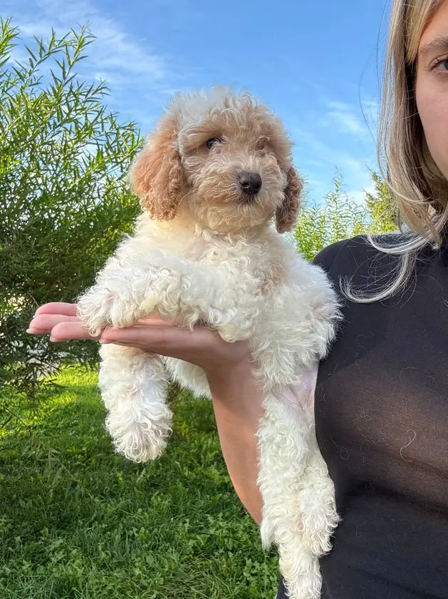 Just look, a true miniature! ✨🐶🥰 Like a perfume bottle—tiny, soft 💛😉 This beautiful little female Maltipoo is ready to become your little ray of sunshine 🐾 Send a message if you're interested ✉️ tashapups04@gmail.com
