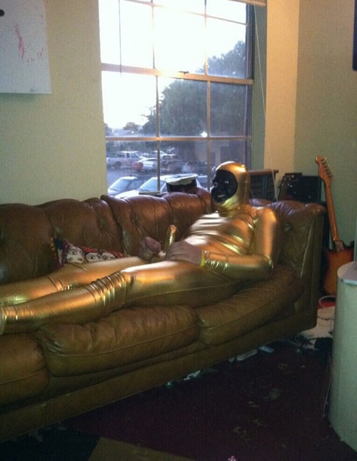 Man this is creepy. And that candy bar is very poorly placed. I think this person might either be deranged or the next host of the academy awards. Definitely frightening and strange!