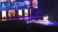 Justin Bieber falls down a staircase while performing with Carly Rae Jepsen, on tour in Saskatoon, Canada!