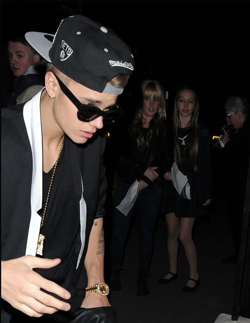 Justin Bieber is escorted inside 21 Curzon Street after his concert on Tuesday (March 5) in London, England.