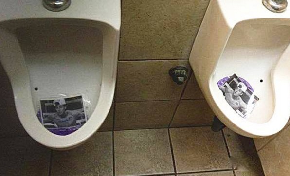 Tired of cleaning up around the urinals? Just add these pics to your toilet bowl and that will fix everything. No more pee on the floor. Guys love peeing on him.
