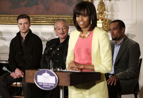 Justin Timberlake joined First Lady Michelle Obama at the White House on Tuesday in Washington, DC.