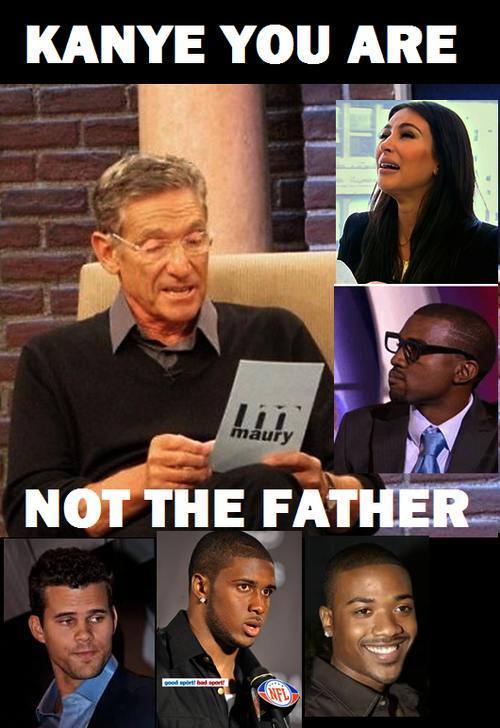 Kanye you are NOT THE FATHER! LOL. LooKS LIKE kim has some explaining to do! Who could be the real father? Kris Humphries? Reggie Bush? Nick Cannon? Hilariously funny @kimkardashian @kanyewest