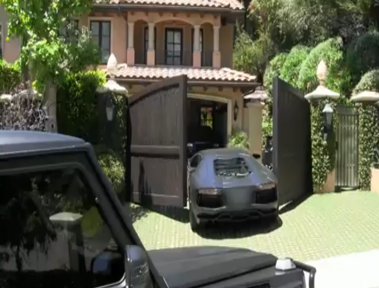 Kanye’s ride was halfway through the automatic entry when the doors began to close, prompting the driver to hurry up and speed inside.