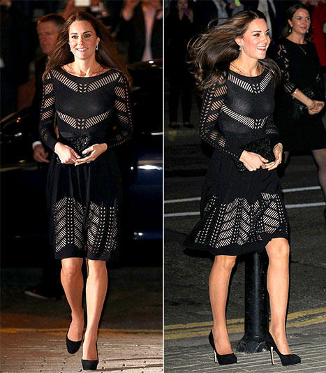 We can't get enough of the Duchess' outfits! It's her third appearance ever since being confirmed to be pregnant and not appearing in public because of her first trimester morning sickness. The Duchess of Cambridge looked absolutely gorgeous wearing a black knee-length Temperley London frock. The fitted Emblem Flare dress, which retails for around $960 or 599 pounds, accentuated her tiny baby bump.
