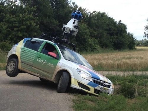 Keep Your Eyes on the Road! Google Maps Street View Car Drives Into a Ditch