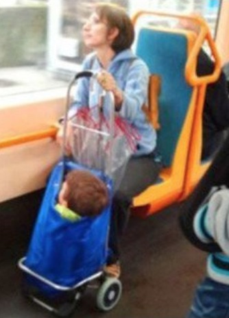 Kid in a Bag DIY Stroller. Nice Work Mom this Looks Ridiculous - Parenting Fail