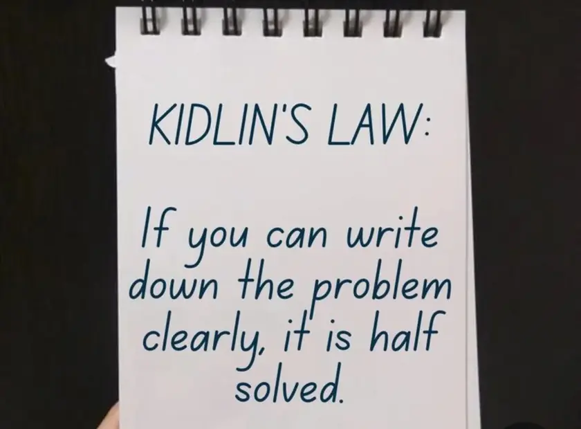 Kidlin's Law: If you can write down the problem clearly, it is half solved.