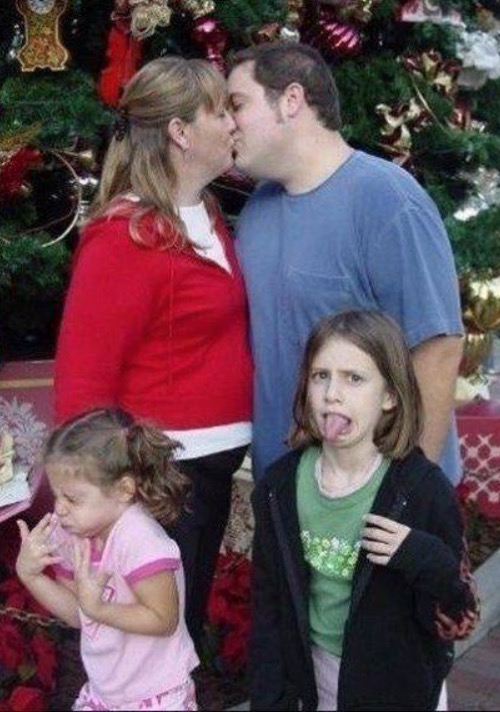 Those kids love when mom and dad kiss. Years later that turns into honey I'm not in the mood I have a headache...
