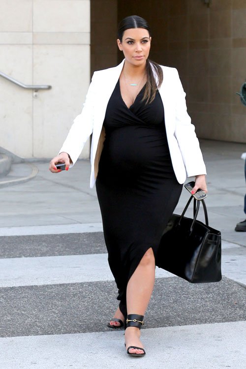 Dressing her baby bump in a black dress and a white cardigan, the mom-to-be hurried inside La Scala while not paying the prying paparazzi any attention.