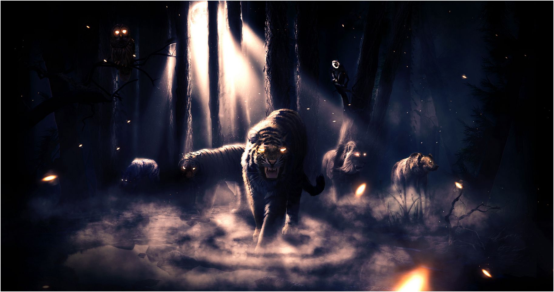 The Evil that can lay within the darkness of the deep woods (Tiger Wolves, Bear, Lion)