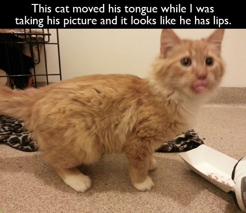 This is the best duck face ever. A cat is making a duck face. What could be better than that? Next thing you know dogs will be making cat faces.