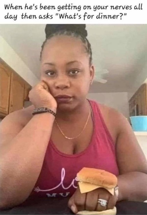 When he's been getting on your nerves all day then asks: "What's for dinner?"