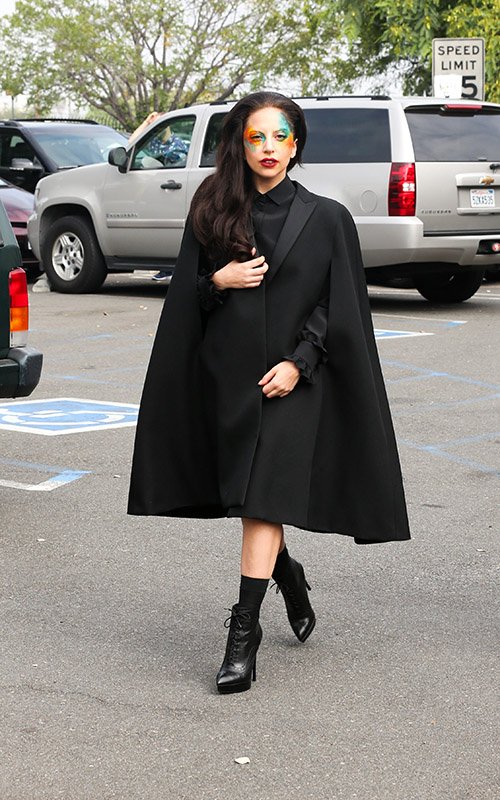 Once again showing off her colorful makeover, Lady Gaga stepped out for promotional work in Los Angeles, CA on Tuesday (August 13).