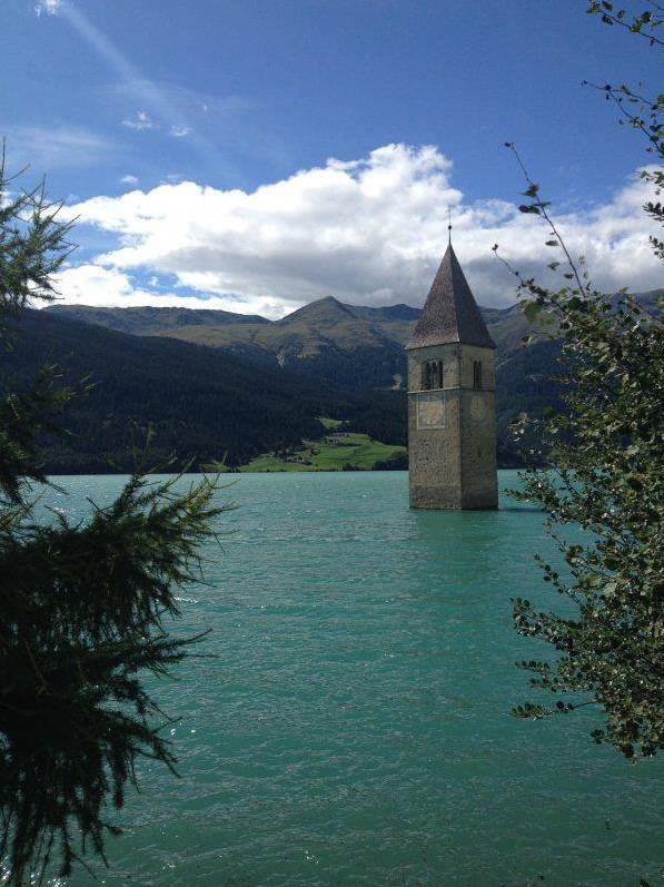 This church sits alone in a lake with beautiful blue green water. The heavens above light the sky making the church appear like a beacon. Simply divine!