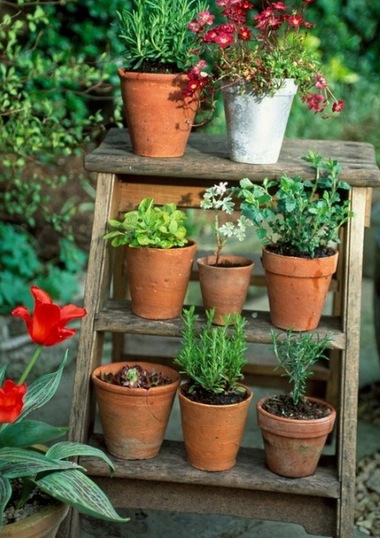Enhance your garden and give yourself more space by layering your plants on the steps of an old ladder!